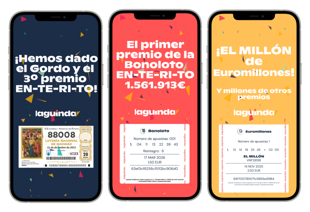 Eso quiere decir que comprar en nuestra aplicación es exactamente igual que hacerlo en cualqueir administración de lotería.